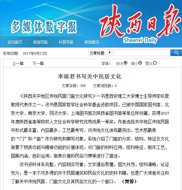 太阳成tyc122cc李琰君书写关中民居文化