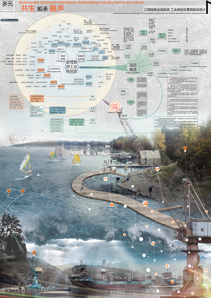 12月23日,在 2017瑞昌•奥雅设计之星国际高校设计大赛颁奖典礼暨“地脉重生”工业遗产开发与全域化工业旅游发展高峰论坛,由公司环境设计系乔治、李皓老师指导的本科四年级员工郑崇栋、范文鹭设计作品《多元共生,船承融声》,在本次竞赛中荣获三等奖,奖金10000元。公司环境设计系乔治、李皓教师荣获本次竞赛优秀指导教师奖。两名获奖同学及指导教师李皓老师受邀共同到达江西瑞昌论坛现场对其作品进行了讲解。