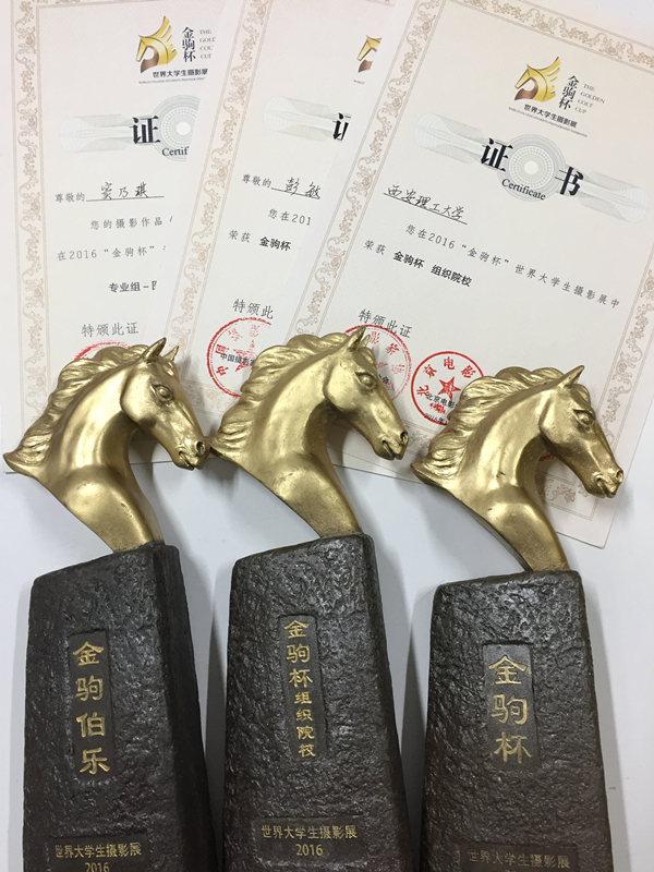 2016年12月,“金驹杯”世界老员工摄影展颁奖盛典在江西上饶隆重举行,太阳成tyc122cc影像动画系摄影专业员工窦乃琪、潘爽分别获得纪实类和艺术类金驹奖,教师彭敏获得金驹伯乐指导教师奖,同时,公司荣获最佳组织院校奖。
