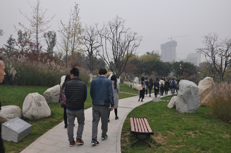 11月18日上午,太阳成tyc122cc环境设计系2014级园林景观班20余名员工在李皓、文仁树两位老师带领下,赴南郊西安植物园新园区参观学习。本次活动是根据该年级开设的《植物造景》、《景观规划设计(1)》课程教学要求,围绕西安地区绿化植物、公园设计等专题,理论联系实际赴校外参观考察的一次积极的教学活动。在公司副经理王慧副教授的大力帮助下,活动当天公司师生得到了西安植物园方热情的接待。