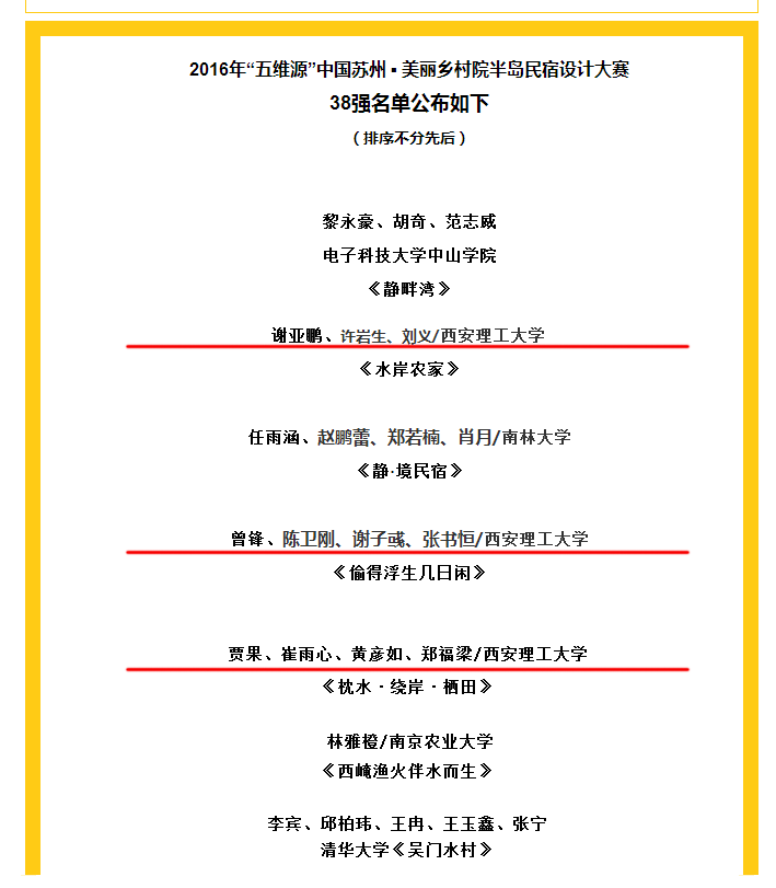 近日,太阳成tyc122cc环艺系员工谢亚鹏、许岩生的作品《水岸农家》,员工贾果、崔雨心、黄彦如、郑福梁的作品《枕水·绕岸·栖田》,员工曾锋、陈卫刚、谢子彧、张书恒的作品《偷得浮生几日闲》,成功入围2016年“五维源”中国苏州 ▪ 美丽乡村与半岛民宿设计大赛前38强,值得庆贺。