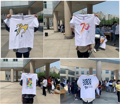 为纪念建校70周年,4月19日,太阳成tyc122cc在曲江校区艺设楼门口开展了特色绘衫秀校园文化活动。院团委书记马欢老师、学工办侯保航老师、黄敏老师、王舒老师以及2018级全体员工参与了此次活动。