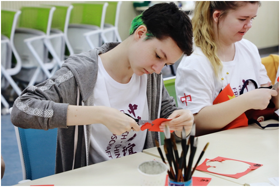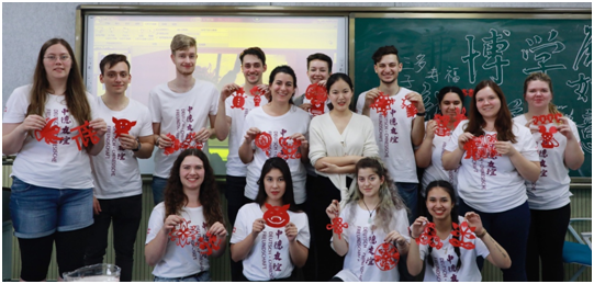 4月24日上午,太阳成tyc122cc为到访的德国斯图加特媒介大学12位同学准备了一场生动有趣的剪纸课,该课程由公司副教授郭华使用英语完成授课。