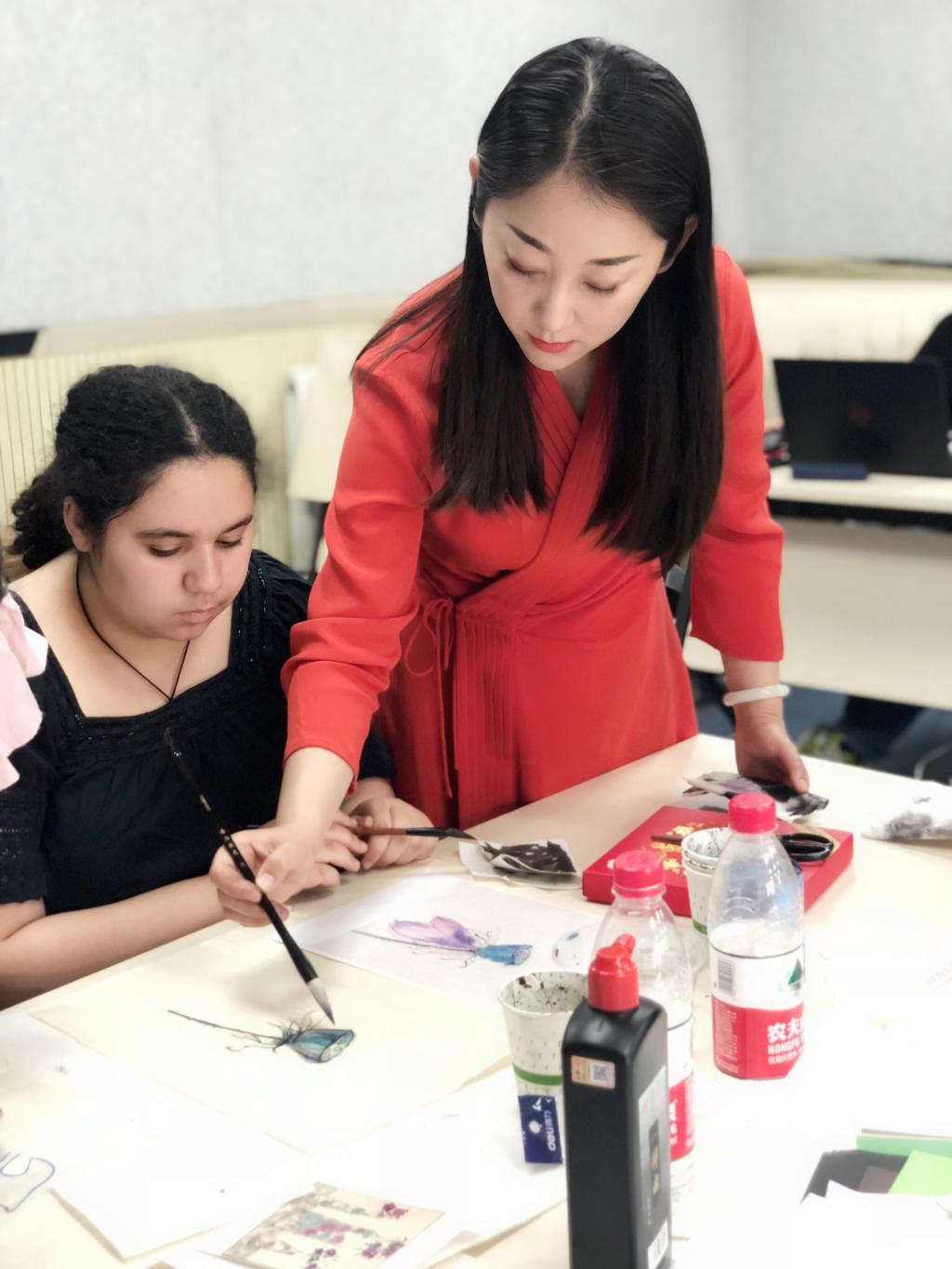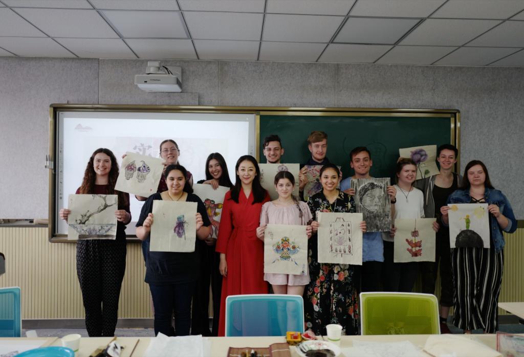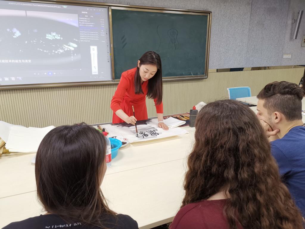 4月26日上午,太阳成tyc122cc为到访的德国斯图加特媒介大学12位同学准备了一堂生动有趣的中国水墨课程,该课程由公司孙茜副教授全程使用英语教学。