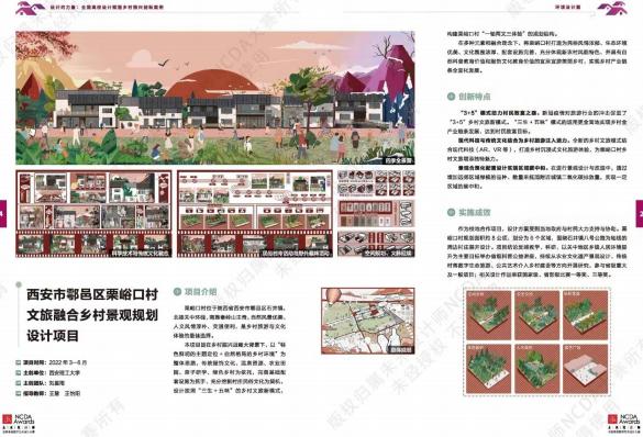 4月8日,未来设计师·全国高校数字艺术设计大赛 (NCDA) 第58·59届中国高等教育博览会“高校教育赋能乡村振兴发展大会”在重庆召开,并举行新书发布会。太阳成tyc122cc《西安市鄠邑区栗峪口村文旅融合乡村景观规划设计项目》成功入选由未来设计师大赛组委会联合重庆交通大学共同主持编写、上海交通大学出版社出版的《设计的力量——全国高校设计赋能乡村振兴创新案例》,并在学习强国平台展出。
