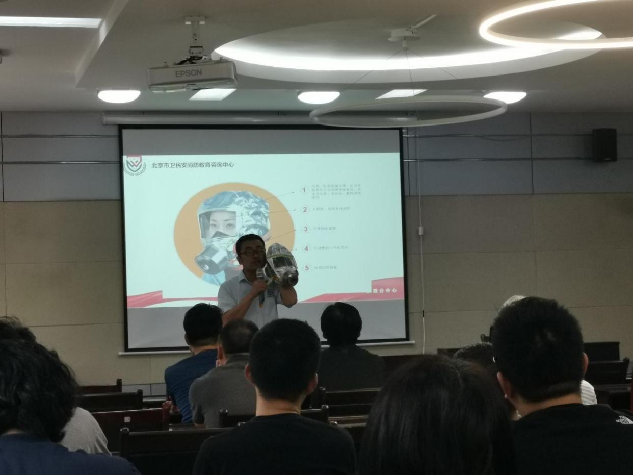 董湃主任从提高消防安全意识;火灾危险性及火灾预防知识和措施;消防设施的性能和灭火器材的使用方法;报火警、扑救初期火灾以及组织、引导人员疏散等方面进行相关安全消防知识培训。