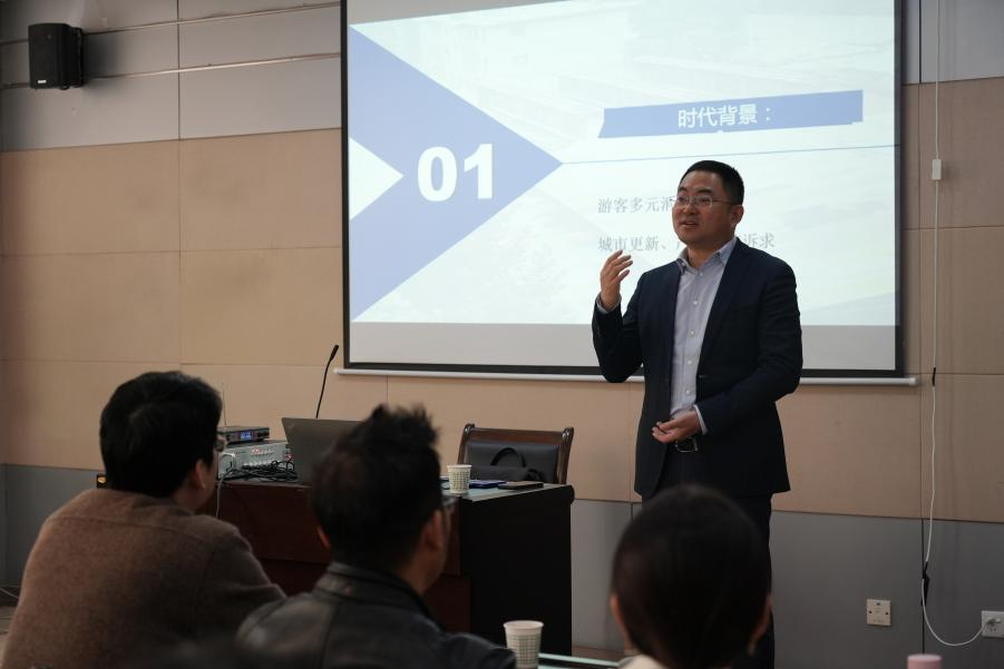 4月7日下午,公司公共艺术教育论坛邀请国家旅游英才、陕西历史文化使者、中旅华山旅游有限责任公司王凯鹏总经理开办题为《沉浸式文商旅项目激活文化空间与都市生活体验》的专题讲座。讲座由太阳成tyc122cc副经理孙浩章教授主持,师生近百人参与了讲座。