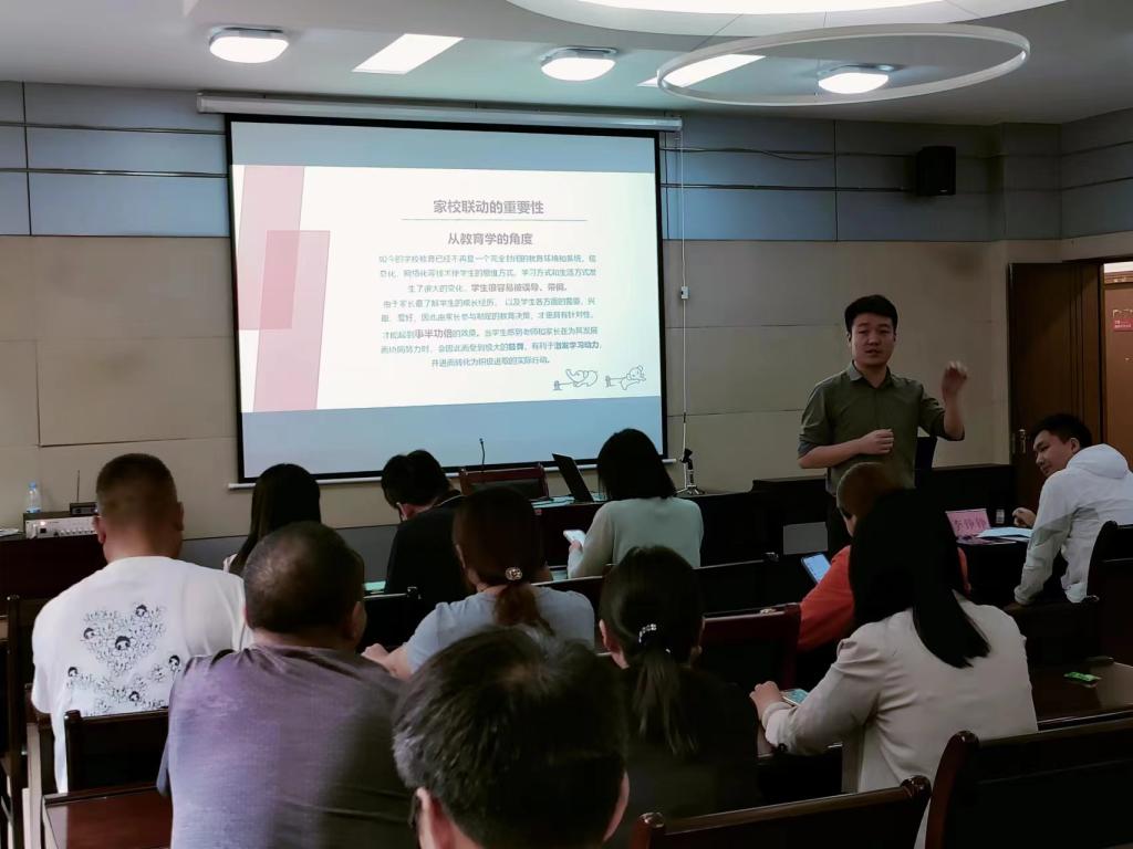 郑智聪从社会学、教育学、管理学三个角度出发强调了家校合作的重要性。他通过辅导员、导师具体工作内容讲解了大学与高中的区别,希望加强家长对各项工作的认识。他以大学学业可能会出现的问题,心理健康教育需要注意的方面,员工参加第二课堂活动的内容,公司奖助学金的种类等4个方面说明了需要家长持续关注的内容。