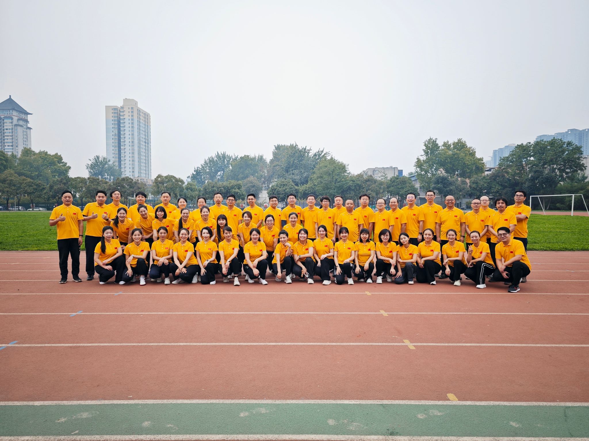 自接到比赛通知以来,公司工会积极筹备、精心组织,60余名教职工在繁忙的工作之余,坚持训练了10余次。赛前等待入场时,公司教职工代表队在金花校区足球场上身着统一服装,以整齐规范的动作、充满自信的姿态,积极投入到最后的彩排中。