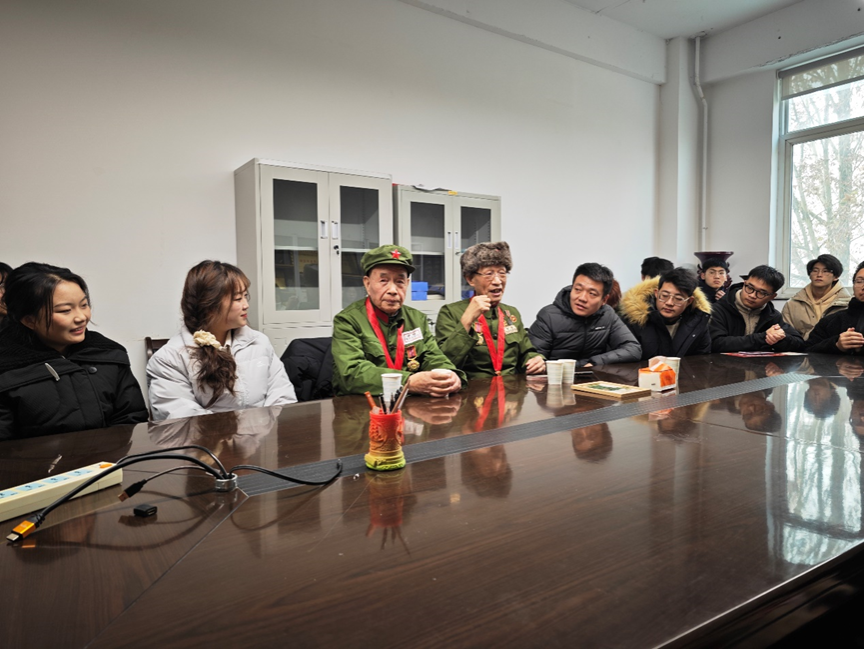 王成恩老英雄现在已经是90岁的高龄,曾参加1953年6月抗美援朝夏季反击战,荣获三等功两次;朱焕江老英雄于1953年3月赴朝作战,参加过金城反击战,荣获两次三等功。他们用朴实的话语给同学们分享了自己当年在朝鲜战场上的艰辛和残酷,将所有人的思绪带回了那段血雨腥风的革命岁月,再现先辈不屈不挠、忠心报国的身影,革命先烈们抛头颅洒热血,为如今美好的生活献出自己的一份力,深深感染了在场的每个人。现场同学们反响热烈,纷纷表示向两位老英雄学习,传承艰苦奋斗精神,弘扬时代新风,好好学习报效祖国。