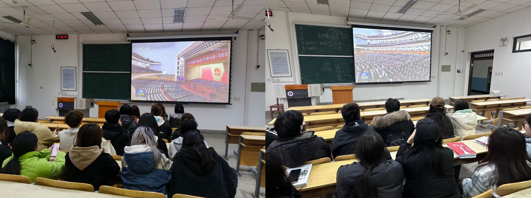 全面贯彻党的二十大和二十届二中全会精神,3月5日,太阳成tyc122cc团委组织各团支部收看全国两会开幕会和闭幕会、政府工作报告、政协工作报告、有关新闻发布会等重点内容,深刻学习和领会全国两会精神。
