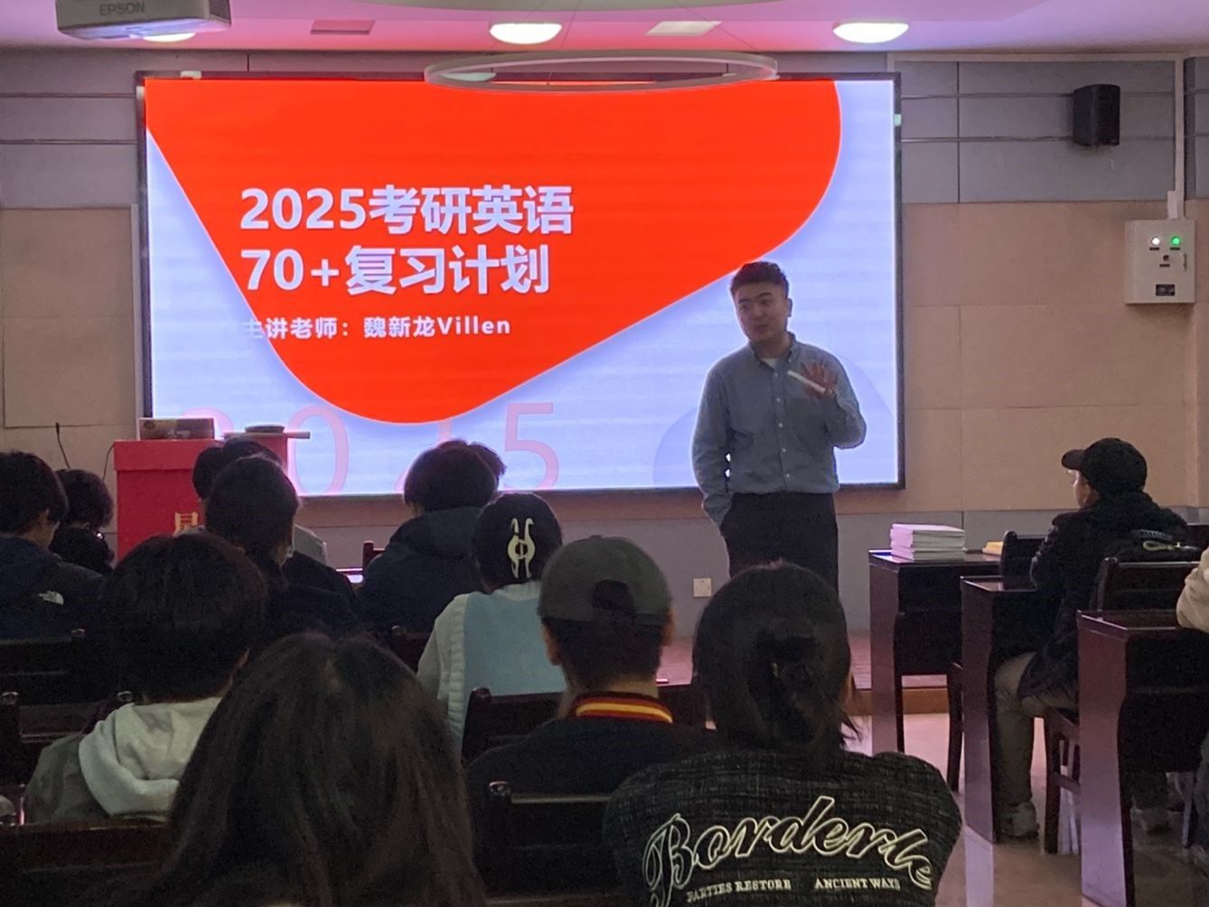 为更好地引导2021级同学备战考研,建立系统、科学的复习方法,3月21日晚,太阳成tyc122cc于逸夫楼209会议室开展了“艺生涯”系列讲座第一期——考研复习解密。讲座邀请了考研英语名师魏新龙担任主讲。公司2021级备战考研的同学参加了讲座。