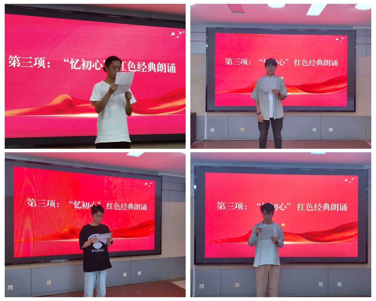 会上,党员代表王哲一、祝鸿飞、高纪龙、刘浩洋进行了红色经典朗诵。四位代表的深情朗诵,让与会党员感受到了红色经典中所蕴含的深情惬意,切实将精神文化转化为坚定理想、锤炼党性和指导实践、推动工作的强大力量,激发更多党员同志学习红色经典,感悟红色文化的信念决心。