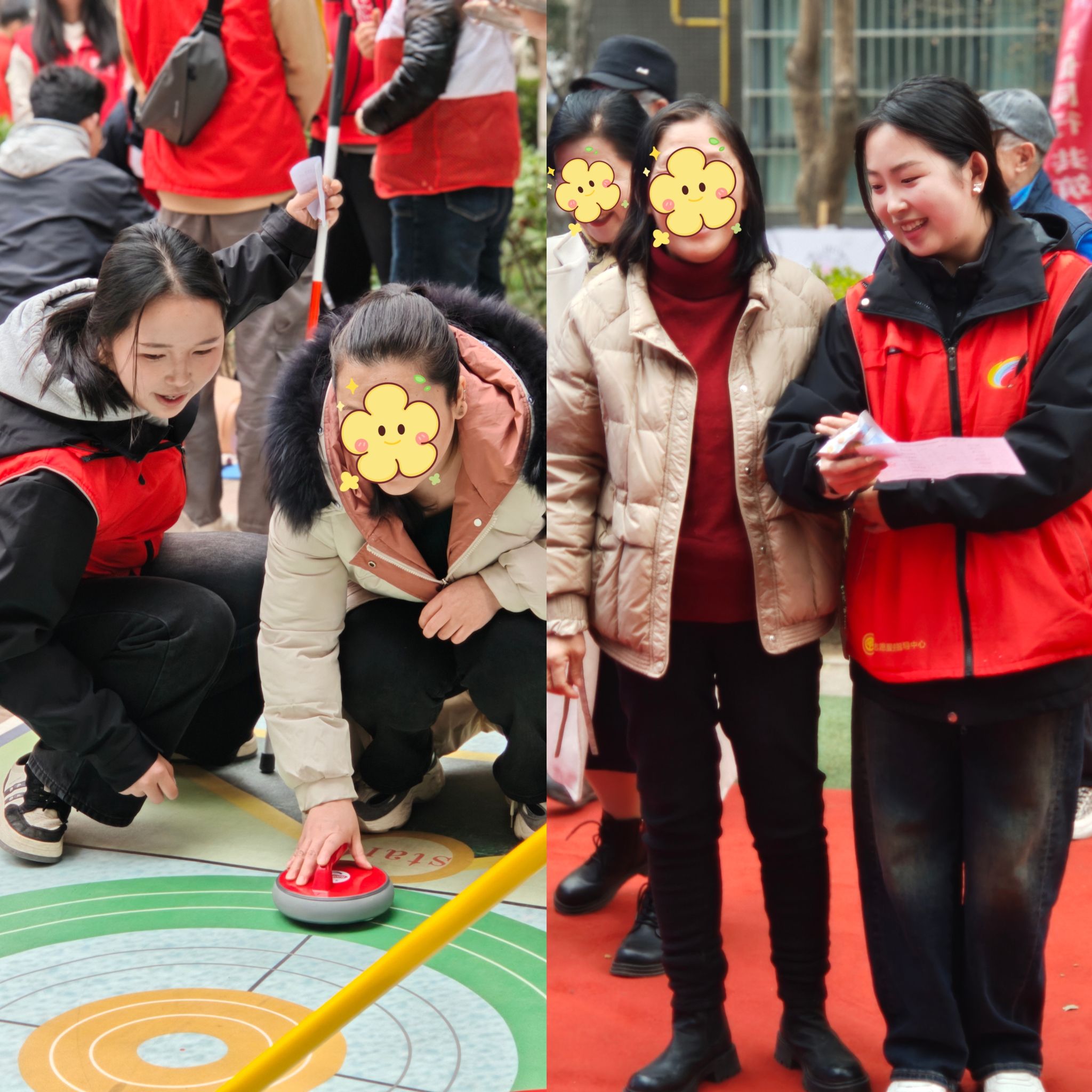 本次运动会设置了蒙眼敲锣、盲人足球、冰壶等12个趣味运动项目。在“蒙眼敲锣”项目中,盲人选手凭借出色的空间感知能力准确敲响锣鼓;“盲人足球”体验中,员工志愿者们以掌声导航,用讲解搭桥,让盲人选手感受足球魅力;“旱地冰壶”项目中,志愿者通过语言描述辅助选手感知赛场动态,比赛在欢笑声中推进。活动现场气氛热烈而温馨,员工志愿者们积极参与其中引导支持残障运动员,共同分享运动的快乐,让残障运动员们在互动中收获尊重与支持,诠释了体育精神的平等与温度。