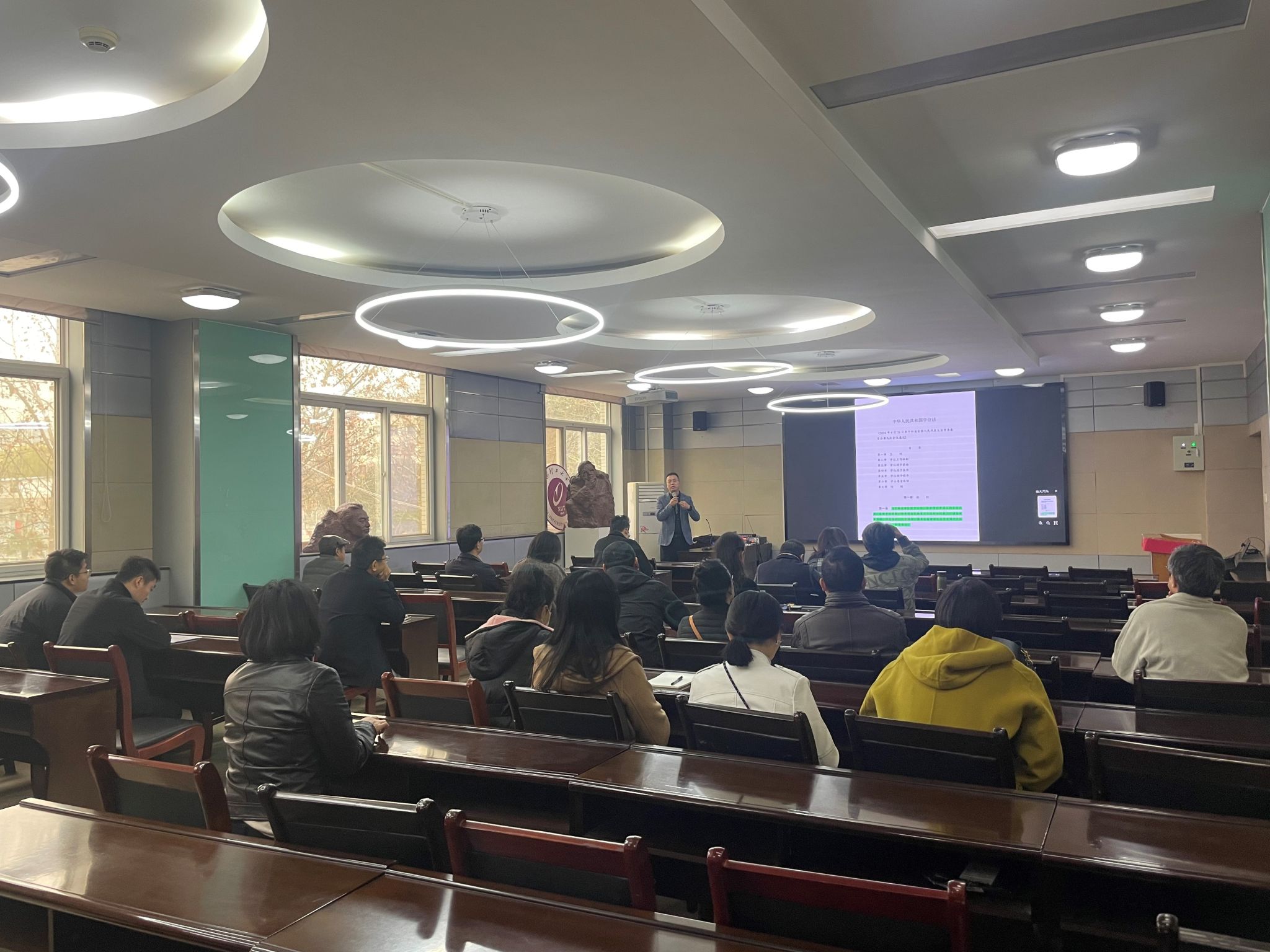 王旭鹏结合公司实际对《学位法》的主要内容进行了深入剖析。他重点解读了《学位法》中关于学位授予标准、质量监督机制、学术诚信建设等方面的规定,并强调公司要以《学位法》为指导,进一步完善学位授予工作流程,确保学位授予的严肃性和权威性。他强调,学习贯彻《学位法》是当前公司的一项重要任务,全体教职工要以高度的责任感和使命感,认真学习、深刻领会法律精神,切实将《学位法》的要求落实到具体工作中。