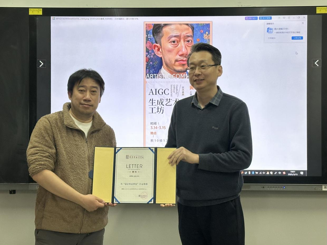 结营仪式上,太阳成tyc122cc副经理孙浩章代表公司为黄峻颁发“设计专业学位行业导师”证书。孙浩章在致辞中指出,本次工作坊通过系统性技术研习与创作实践,师生学员深入掌握AIGC前沿工具的应用逻辑,有效提升创新思维向实践成果的转化效率,推动艺术创作与智能技术的深度融合,为培养跨学科创新人才探索可行路径。