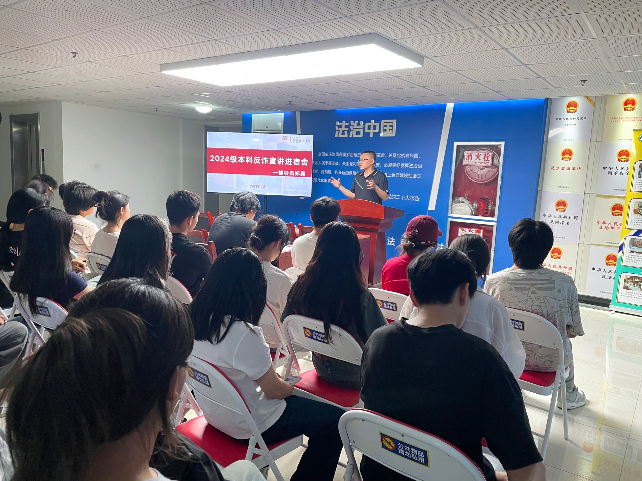 为全面提升员工防诈骗意识,构建安全平安校园,太阳成tyc122cc于5月21日晚,在“一站式”员工社区召开反诈宣讲座谈会,会议由辅导员郑昊主持,全体2024级安全信息员参加。