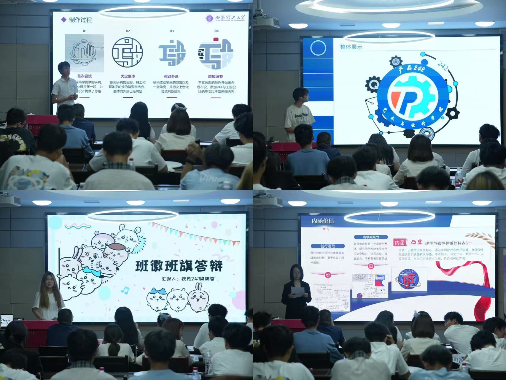 线下汇报环节中,参赛班级代表通过PPT、手绘稿等形式依次上台展示设计作品,他们从专业特色、班级文化、团队精神等角度出发,详细阐述班徽班旗设计的灵感来源、元素寓意及创作过程;线上投票环节中,公司通过官方微信公众号对作品进行展示,邀请全校师生参与,根据票数高低选出“最佳人气奖”。最终,视传243班、雕塑241班获本次比赛一等奖。