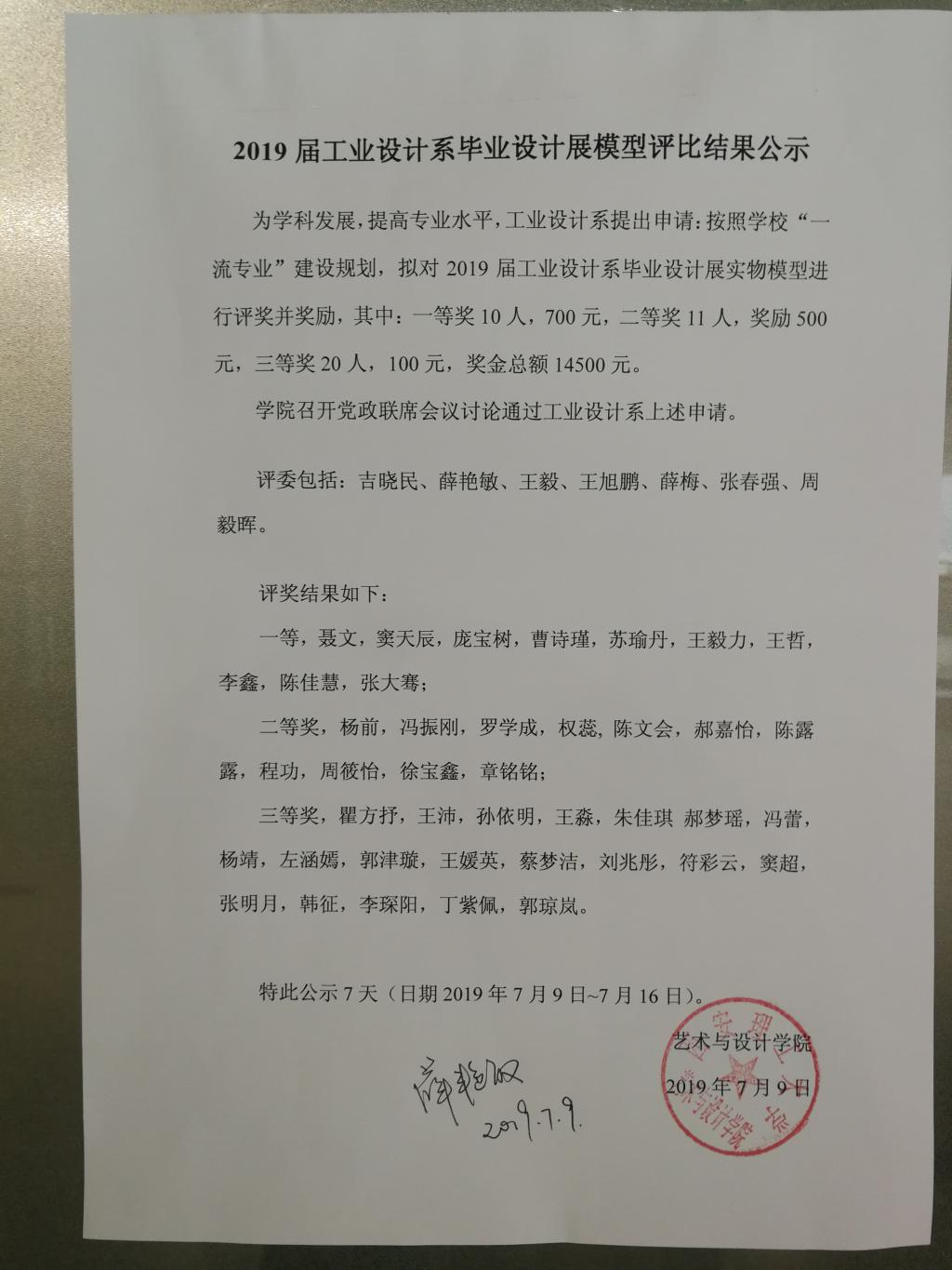 公示时间自2019年7月9日至2019年7月16日,公示期间如有任何异议,请向太阳成tyc122cc办公室反映,联系电话:82066428。