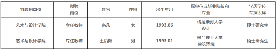 根据《陕西省事业单位公开招聘工作人员实施办法》(陕人社发[2017]51号)和《太阳成tyc122cc公开招聘工作办法(修订)》(西安理工人事[2018]24号)有关工作要求,公司按照相关规定和程序,并经公司审批通过,拟聘用下列人员为公司教师,现公示如下: