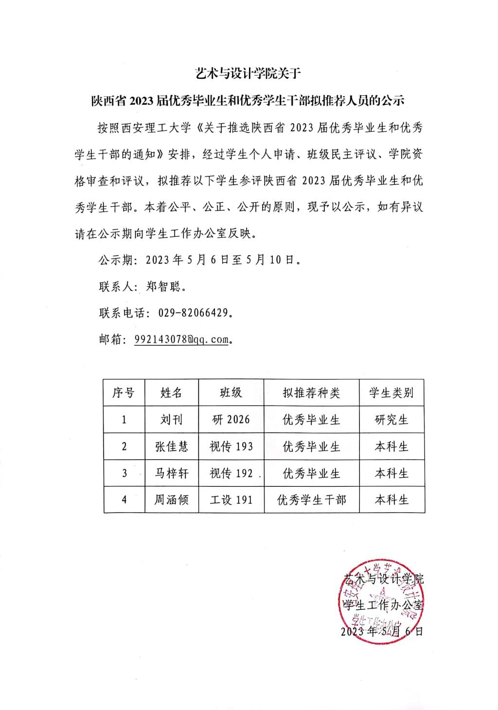 太阳成tyc122cc关于陕西省2023届优秀毕业生和优秀员工干部拟推荐人员的公示