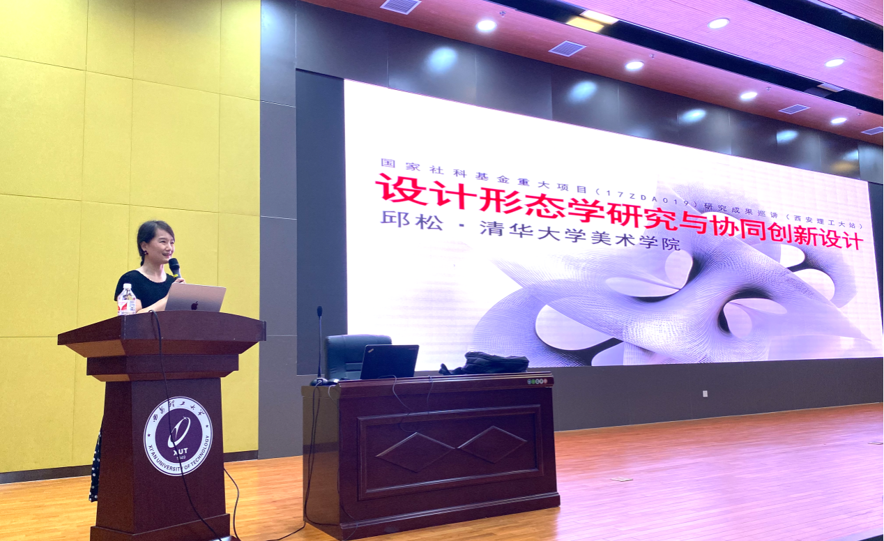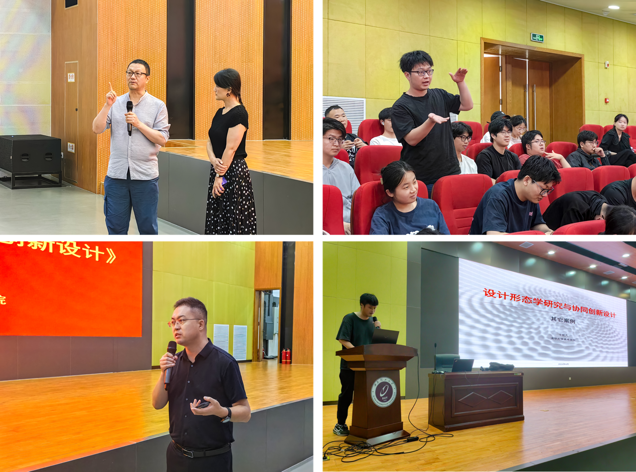 邱松教授在讲座中指出“设计的核心思想是为人类服务”,即从最初只为解决人们生活中的需求和难题,逐渐扩大到如何协调人与物(造物)、人与人(社会)、人与环境(生态)、乃至人与未来(趋势)的关系。“设计形态学”就是通过研究形态的生成规律、原理和本源,以及与人的关系,来启发和促进协同创新的学科。博士生于哲凡从研究生开展科研项目的方式进行了案例分享。