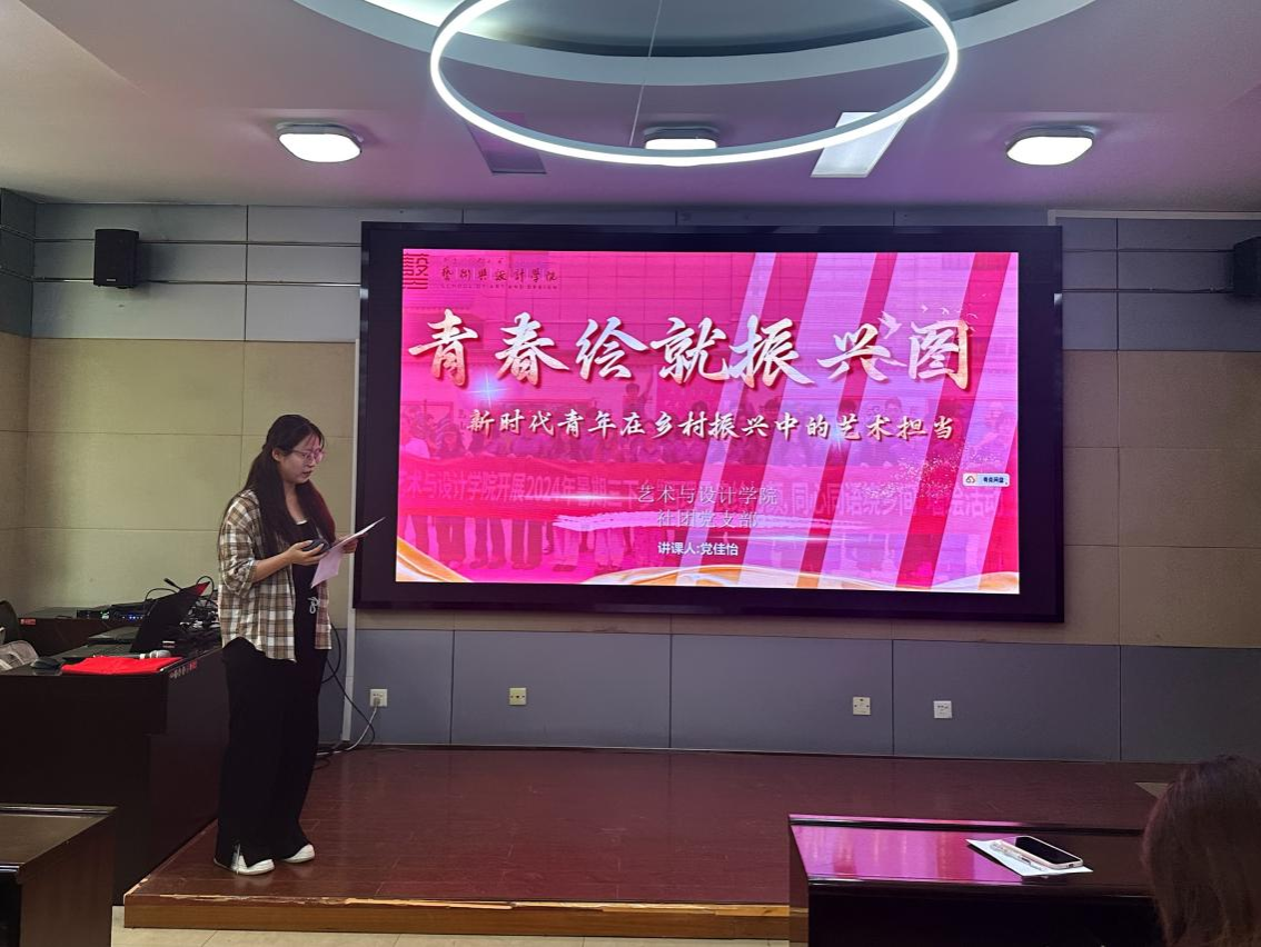 太阳成tyc122cc艺术与设计公司党员代表党佳怡带来主题微党课“青春绘就振兴图”。她结合自身学习与实践经历,从“初心·文化根脉的守护者”“从纸上谈兵到墙上生花”以及“墙绘之外的意外收获”三个部分展开宣讲。她以生动案例和真挚话语,分享了新时达青年在乡村振新中的艺术担当,以及自身对党员责任与使命的理解,为党员们带来思想启迪。
